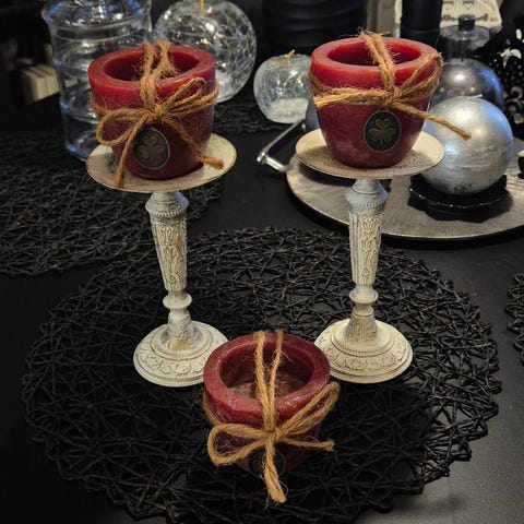 Tukeva vanha kynttilänjalka neljälle kruunukynttilälle.