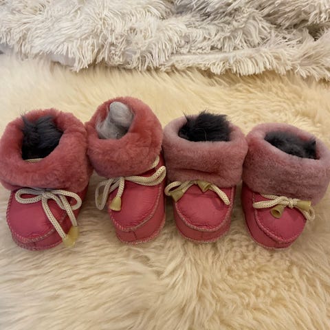 -Vauvojen turkistossut on valmistettu lampaanturkiksesta.