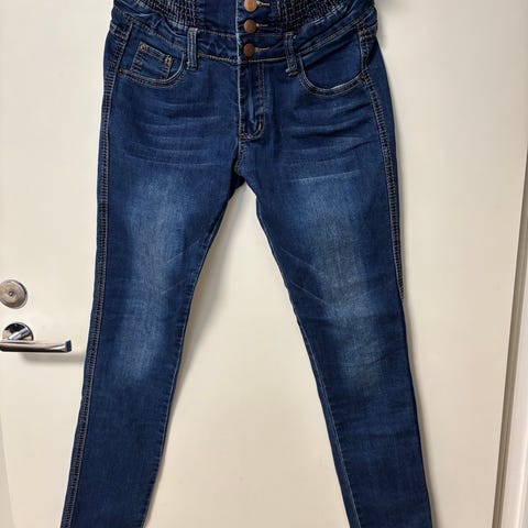 Polvista revityt kulutetun harmaat stretch-farkut. Koko 7, eli vyötärö noin 27. Venyy joten menee S ja M -koolle. Mittoja tarvittaessa. Siisti käytetty kunto.