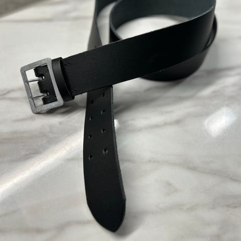 Näyttävä musta nahkavyö messinki soljella.