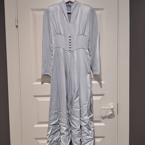 Ompelijan tekemä morsiuspuku, koko 34 tai 36. Aito vuodelta 1962.