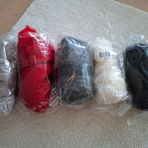Huovutusvillaa ja pienet palat keltaista ja vihreää palavillaa 7+ postitus 6