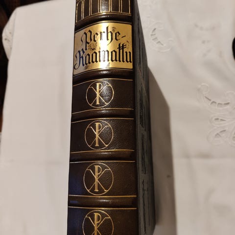 Iso nahkaselustainen perheraamattu 1338 sivua vuosi 1942.