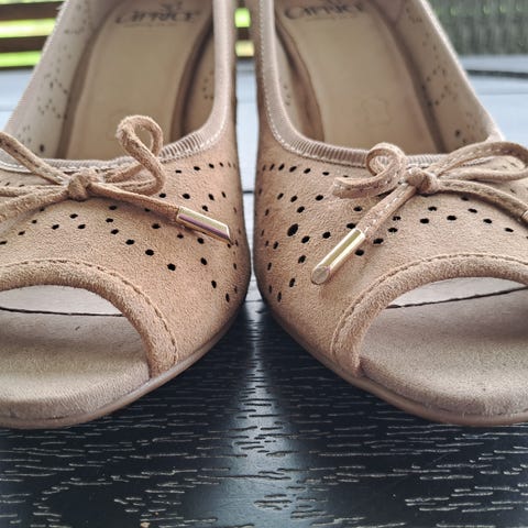 Nämä kauniit nuden väriset kengät. Menevät kuin juhlaan, niin arkeen. Ostin juuri ennen raskaaksi tulemista, jäivät kaappiin odottamaan juhlia ja nyt en pysty enää korkokenkiä käyttämään lainkaan. OHV 150e.
