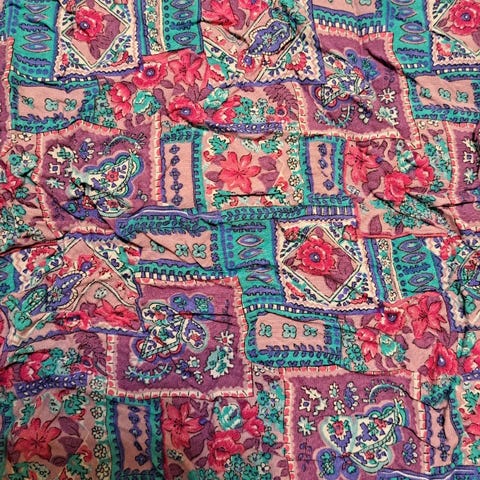 #luonnonmateriaali #kuvioitu #ohut #monivärinen #värikäs #ohutkangas #ompelutarvike #käsityötarvike #viskoosikangas #vaatekangas #asustekangas #80-luku #vaatekangas #kasari #vaatetuskangas #viskoosi #kauniistilaskeutuva #hamekangas AA400