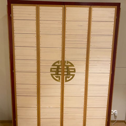 Myydään soittimien säilytykseen puusepällä koivupuusta teetetty todella tilava ja tukeva kaappi. Esimerkiksi 4/4 sello mahtuu koteloineen hyllylle vaakatasossa. Kaappia voi käyttää myös TV:n ja viihde-elektroniikan säilytykseen, takalevyssä aukko johdoille.