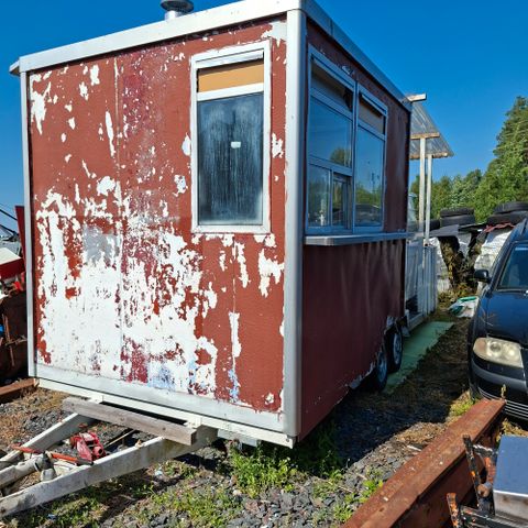 Tästä kesällä rakennettu siirtokilvillä siirrettävä saunakärry 6-8 henkilölle. Kärryssä akulla toimivat valot sisällä sekä napista löylyt joten ei tarvi heitellä vettä. Uusi kiuas jossa vedenlämmitin piipussa. Takaseinällä iso ikkuna ja kärryn takaosassa n.200litran vesisäiliö josta saa löylyvedet sekä pesuvedet. Kärryssä toimii kaikki valot sekä jarrut.