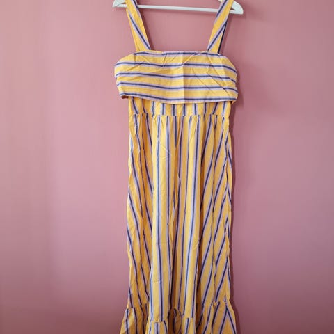 Viskoosia. Mitat kai-kai 52. Olka-helma 130 cm. Kuminauharypytys vyötäröllä. Sopii hyvin neuleenkin kanssa käytettäväksi. Frillahelma. Käyttämätön. Mielellään nouto Leinolasta 10 euroa. Voin myös lähettää normaalisti postin seurattavana pakettina. (8, 90€)