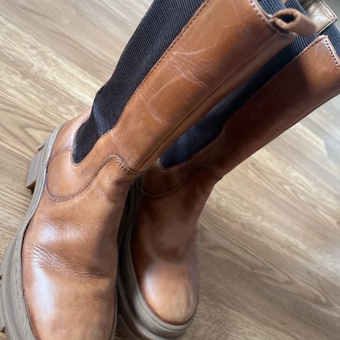 Solena Aaltonen Made in Finland talvisaappaat kokoa 3,5. Korko kantapäästä vähän yli 5 cm. Materiaali pehmeää nahkaa, vuori tekstiiliä ja pohja vaikuttaa villalle. Materiaaleista ei ole merkintää. Ei ole pohjallisia. Hyvä kunto, vähän käytetty. Kulumaa kantalapuissa, hiukan päkiän kohdalla pohjassa ja hiukan kärjessä.