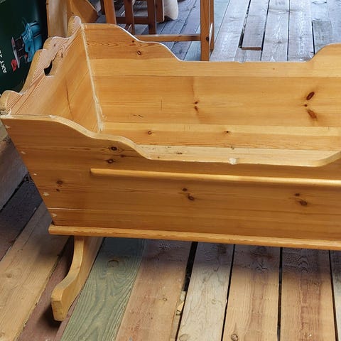 Tukevarakenteinen kehto, pituus 68 cm, leveys 48 cm (sisämitat) ja korkeus päädystä 35 cm