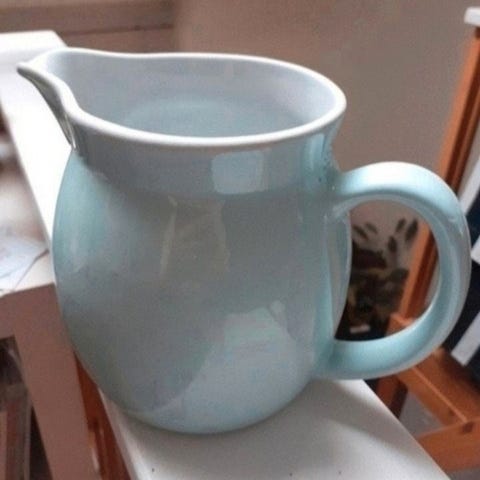 Ihana Arabian vanha maitokannu. Erittäin siistissä kunnossa, ei krakeloitumaa. Pohjassa pieni kulumakohta, joka näkyy viimeisessä kuvassa. Kun kannu pöydällä pystyasennossa, niin kulumakohta ei näy.