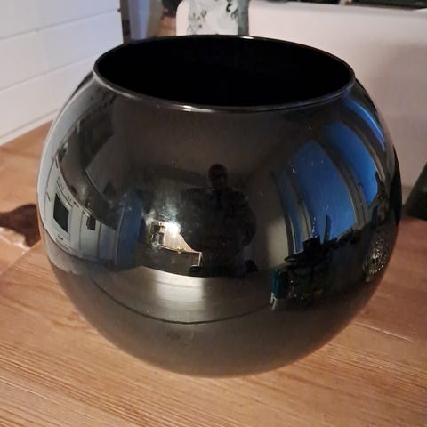 Korkeus n 16 cm, halkaisija n 9 cm. Ruotsalainen Åfors Glasbutik maljakko, kunto hyvä.