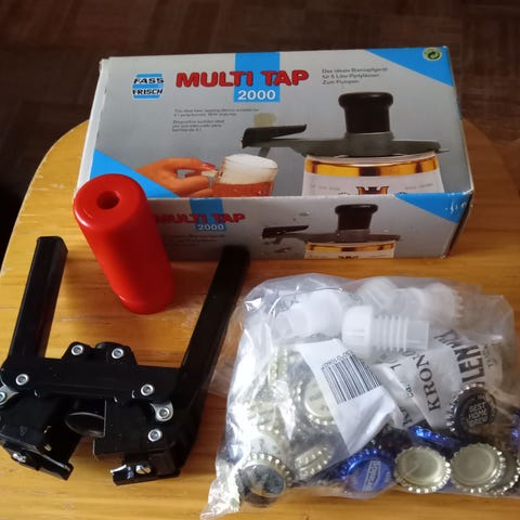 Kotioluen valmistajille kruunukorkin-sulkija n,50kpl korkkeja sekä Alkoholin prosentti-mittari.