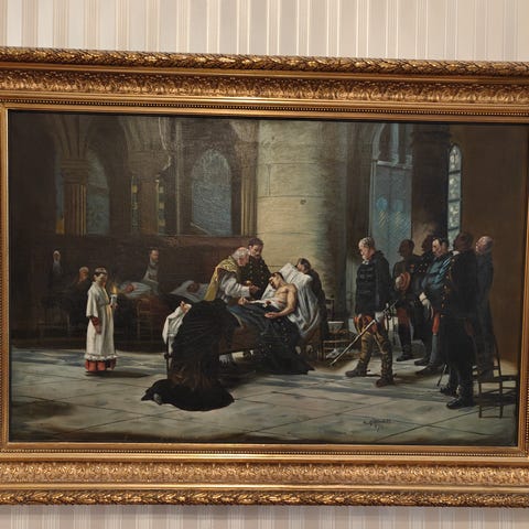 Taulun runko ja tausta on vankkaa tekoa. Kehyksessä pientä ajan kulumaa, kokonaisuutena ikäänsä nähden hyvä. Tarjouksia otetaan.