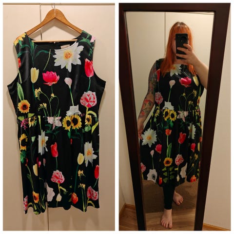 Ihana Pariisi aiheinen Lindy Bopin punainen mekko koossa 38/40. Mekossa leveä pyörivä helma, taskut ja selkäpuolella vetoketjukiinnitys. Helma pääsee oikeuksiinsa tyllin kanssa, mutta menee pitää ilmankin. Parit juhlat juhlittu, todella hyvässä kunnossa. Ovh. 70eur. Hp. 25 euroa.