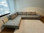 Divaani oikealla. Divaaniosaa ei voi siirtää toiselle puolelle. Kaikki päälliset ovat pestäviä. Sohvan saa kahteen osaan.