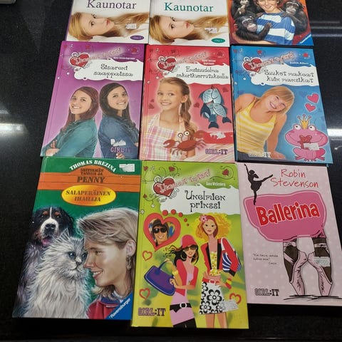 Girl:IT-kirjat, kuvanmukaiset, siistit ja puhtaat. Kahdessa omistuskirjoitus.