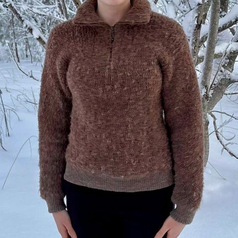 Kaulasta alaspäin yhtenä kappaleena neulottu uniikki villapusero, neule ihan omasta päästä kehitelty. Lanka on Hjertegarn Natur Uld 100%:n villa. Neule on 12 eri sävyisestä langasta ja siitä johtuen iso määrä pääteltyjä lankoja. Paino neuleella 700 g. Koko ehkä 38-40. Kaula-aukko on iso, jotta mahtuu esim. huppu tai takinkaulus alle, neule on lantion puolenvälinmittainen. Mitat: olkapää-lantio 62 cm, kainalo-kainalo 48 cm, kainalo-lantio 39 cm, sisäpituus hihalle 41 cm. Villa venyy, nämä mitat ovat venyttämättä. Hinta 58 euroa, täysin käyttämätön.