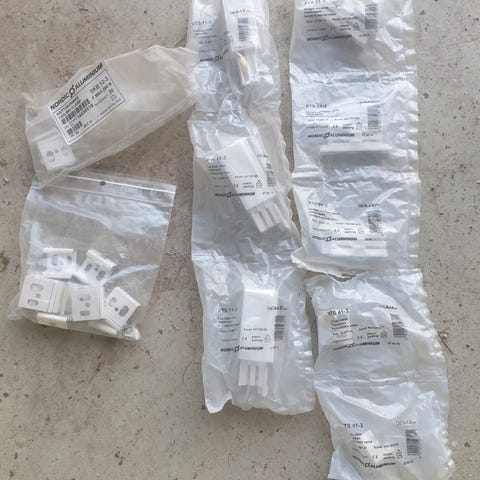 Vanhoja noin 60-100 vuotkaita käyttämättömiä sähkötarvikkeita.
