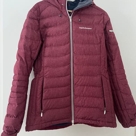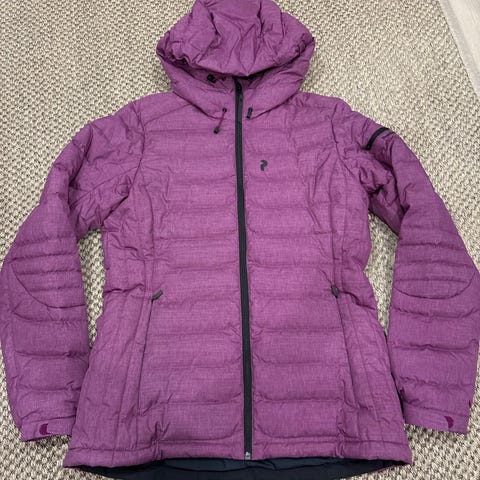 Lämmin Peak Performancen untuvalaskettelutakki. Vasemmassa hihassa tasku rinnelipulle, takin alareunassa lumilukko. Sivuilla vetoketjullisen taskut sekä takin sisällä yksi povitasku. Hihoissa tarrakiristys. Malli W BLACKB J G40404022.
