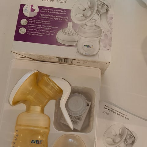 Myydään tarpeettomana vähän käytetty käsirintapumppu ja käyttämättömät maidon kerääjät. Kaikki osat steriloitu sterilointikoneella.