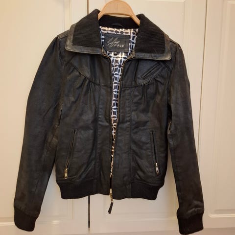 MNG genuine leather pusakka. Väri musta, koko S. Possun ja lampaan nahkaa / mokkanahkaa. Vuori polyesteriä. Liki kuin uusi, siisti ja hyväkuntoinen.