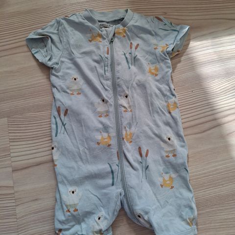 Myytävänä uusi shortsiasu. Koko 56. Paidassa nepparit olkapäällä, helpottamassa pukemista. Shortseissa kuminauha vyötäröllä. Lahkeissa ohut kuminauha kevyesti kiristämässä.