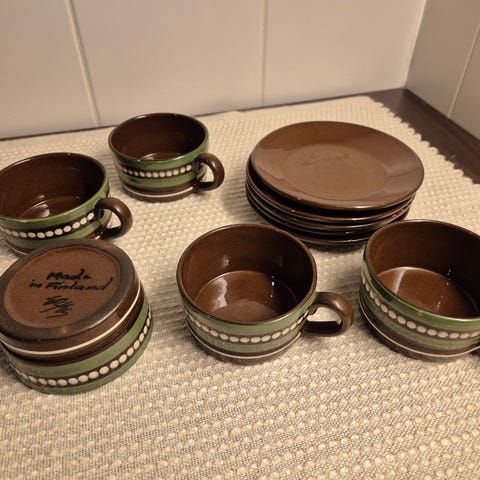 Karjala teekuppi+lautanen Kupittaan savi 1kpl