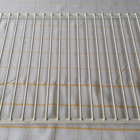 Uusi lautashylly, Harmaan värinen. Pituus 75,4 cm, kannatusväli 25 cm.