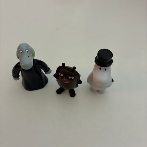 Myydään 7 pientä Muumi hahmoa. Muovisia ja pientä kulumaa. Kaikki yht 5+ kirjemaksu.