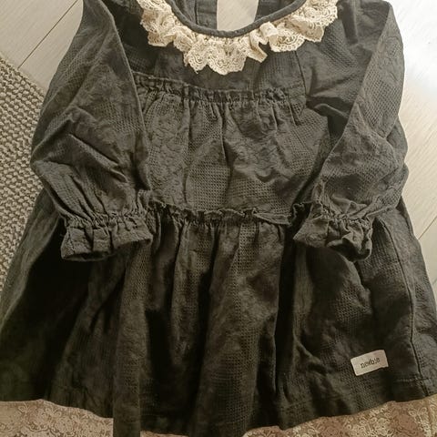 Kukallinen hempeän pinkki mekko, jossa rinnassa pitsi ja röyhelö. Helmassa myös pitsi. Takana muutama painonappi. Koko 80. Kunto erinomainen.