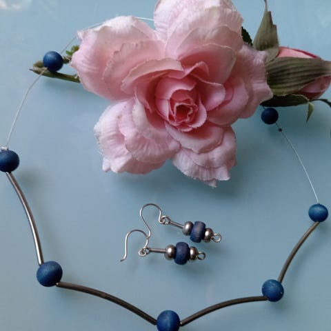 Aarikan korusetti. Kaulakoru, rannekoru, rintaneula ja korvikset.
