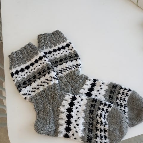 Käsin kudotut sukat puuvillalangasta. Vahvistettu kantapää. Pesu 40astetta. Hinta 16euroa pari tai Mobilepay. Haku Karjalankadulta tai postitus.