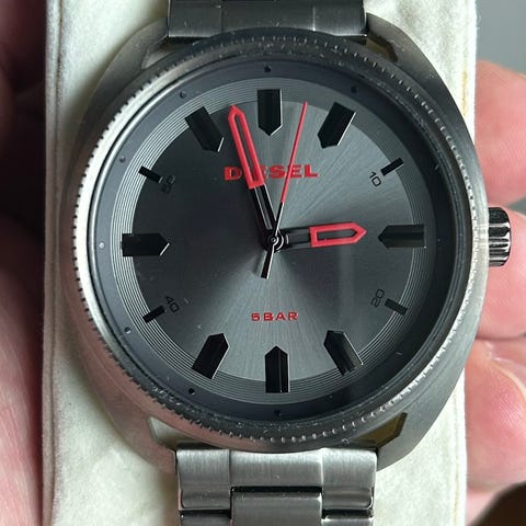 Myydään upea Dieselin naisten rannekello. Hyvässä kunnossa, ei ole paljoa käytetty. Nouto Espoo Tapiola tai postit lisätään. En valitettavasti ehdi mittailla/kuvailla enempää, olet tervetullut paikan päälle tätä katsomaan. Tämä on saatavilla/myynnissä kunnes ilmoitus on poistettu. En käytä toridiiliä.
