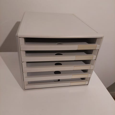 Laatikosto pöydän alle kiinnitettäväksi, tai vapaasti liikuteltava. Pyörät alla.