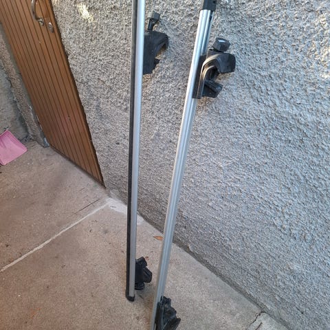 Volgswagenin kattoteline myydään edullisesti! Tämä on VW taakkateline, jota olen käyttänyt (e)Upin kanssa. Tuotenumerot: IS4 071 126, IS3 071 126. Koot: 103cm edessä ja 101cm takana. Paino n. 6kg. Kiinnitystapit integroitu päässä. Toiminnee myös muidenkin mallien kanssa. Ei tosin VW passatin. Toimitan telineen tarvittaessa myös postitse.
