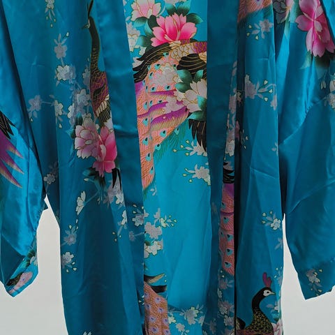 Myydään Tokyokan:sta ostettu kimono vyöllä, kerran käytetty, Japanin koko 40, Pituus 101cm, kainalosta kainaloon n 47 (tätä hankala mitata kun kietaisu joustaa suuntaansa). Nouto Tapiolasta/toridiili