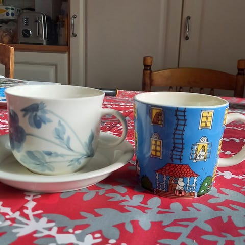 Hyväkuntoinen Arabian Äidin kuppi vuodelta 1979. Muotoilija Gunvor Olin-Grönqvist ja kuvittaja Heljä Liukko-Sundström. Sarjaa tehty eri teemoilla 1979 ja 1980 luvuilla. Kuppi ja tassi vitroposliinia.