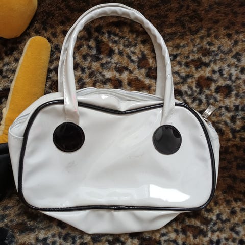 Myydään uusi valkoinen televisio käsilaukku. Hauska printti ja nappulat pyörii. Laukussa vetokeju,sisällä tasku vetoketjulla.pitkä irroitettava olkahihna. Ei tule heti vastaan samanlaista, ulkomailta ostettu.