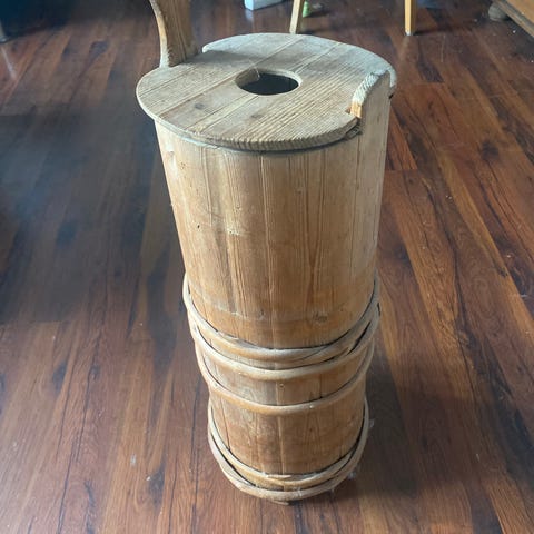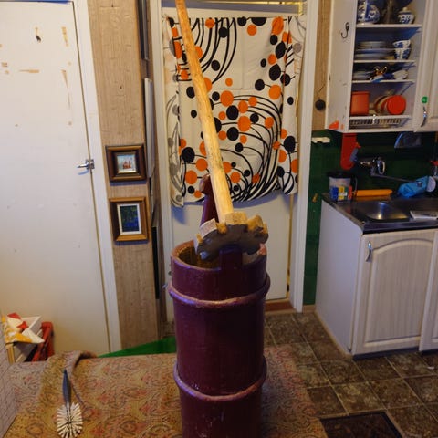 Myydään kaunis vanha kirnu. Korkeus 75 cm. Laita vaikka eteiseen sateenvarjosäilytystä varten.