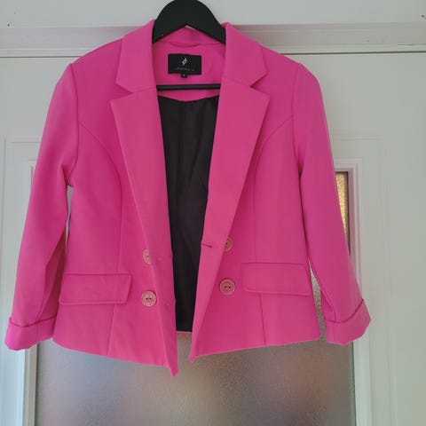 JC merkkinen turkoosi lyhyt jakku. Naisten malliston bleiseri minkä koko on S. Kiva kolitsinen jakkutakki mikä sopii hyvin juhliin tai on myös siisti työtakki toimistossa. Tyylikäs college kankaasta tehty lyhyt takki. Tämä on kiva juhlissa mekon päällä viileillä ilmoilla. Nappikiinnitys on takin edessä. Tämä on vähän lyhyt bleiseri malliltaan. Tästä jollekin käyttöön nätti juhlava jakku. Tämä on oikein hyväkuntoinen tyylikäs takki jollekin pienelle naiselle. Tätä jakkua ei ole montaa kertaa edes pidetty päällä.