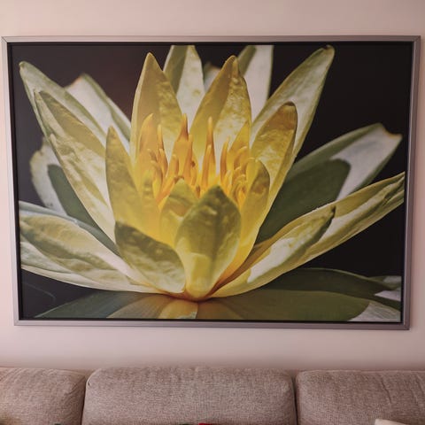 Ikea, Erikslundin kukkataulu. Koko 31× 71,5 cm, kehyksen korkeus 3,2 cm. Ripustus vaakatasossa( ei pystyyn, kuten kuva näyttää)