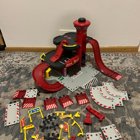Palo-/polisiasemasta toinen ovi hajonnut. Helikopterin toinen jalka osin poikki. Koitan pikaliimalla fiksata.