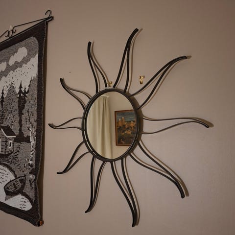Näyttävä aurinkopeili, halkaisija noin 110 cm.