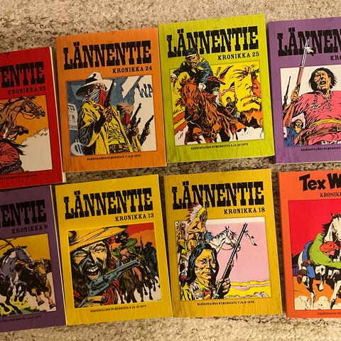 Lännentie. Vanhoja lehtiä, 13 kpl lännentie, 7 Finn West ja iso Tex Willer lehti