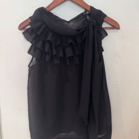 H&M merkkinen valkoinen toppi. Naisten malliston toppi koko 38 eli tämä on M kokoiselle tarkoitettu paita. Tästä kiva toppi missä on pääkallo kuvana topin etupuolella. Ihan pieni reikä on topissa etupuolella. Sen saa helposti ommeltua kiinni niin halutessaan. Kiva hihaton paita mikä sopii hyvin jollekin rokkimimmille. Kiva halloween aiheinen toppi.