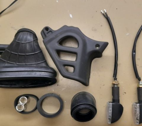 Kaikenlaisien mopeojen osia, 60-luvulta asti.
