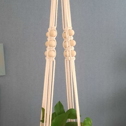 Pieni makramee on solmeiltu luonnonvalkoisesta Lankavan moppilangasta.