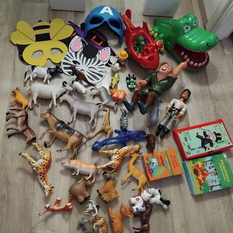 Kuva 2&3 - Liberolta 2 viittaa (toinen puuttuu kuvasta) ja kaksi maskia. Toisesta maskista kuminauha irronnut ja toisessa pian katkeamassa. Kaipaavat ehkä hieman pesuakin.