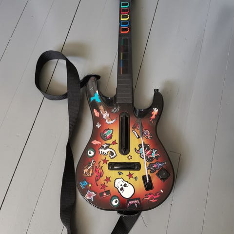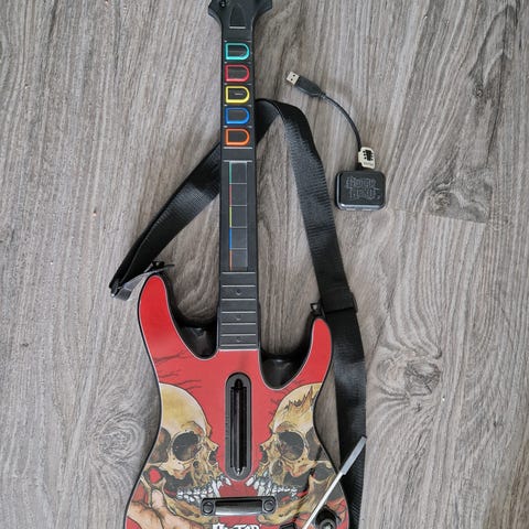 Kitara+olkahihna ja mikki sekä zumba fitness vyö. Ei sisällä pelejä eikä usb-tikkua kitaraan.